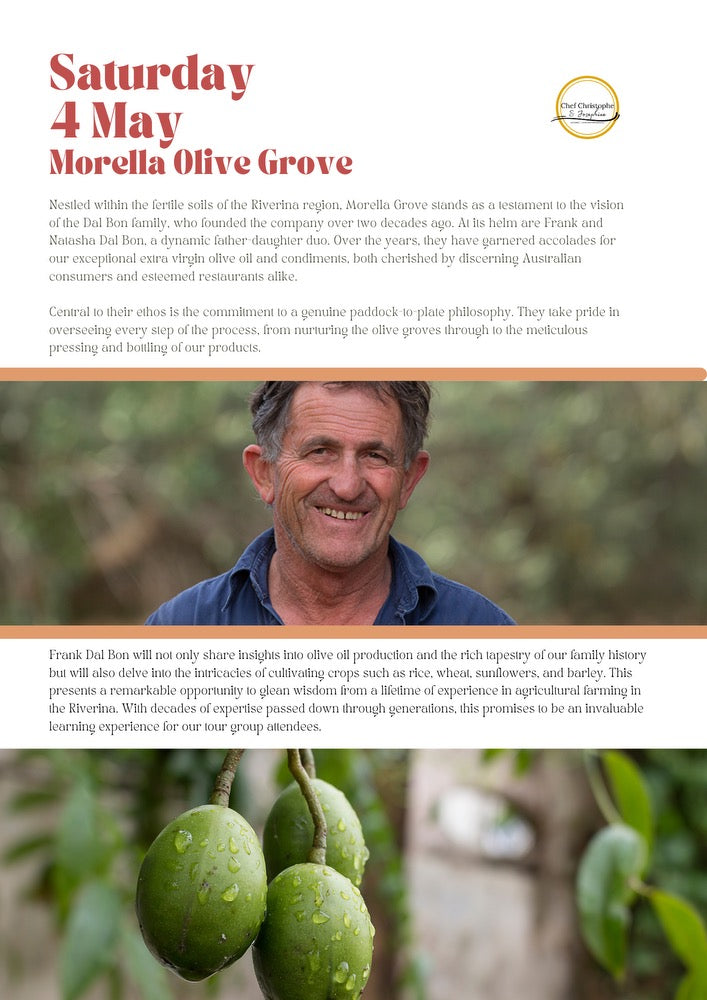 Instagram | Facebook | LinkedInMorella Grove is a family-owned producer of award-winning olive oil and gourmet food products, deeply rooted in the fertile lands of Australia's Riverina region. With a legacy of excellence and a commitment to sustainability, Morella Grove brings the finest quality products from our grove to your table, celebrating the rich heritage of Australian agriculture.